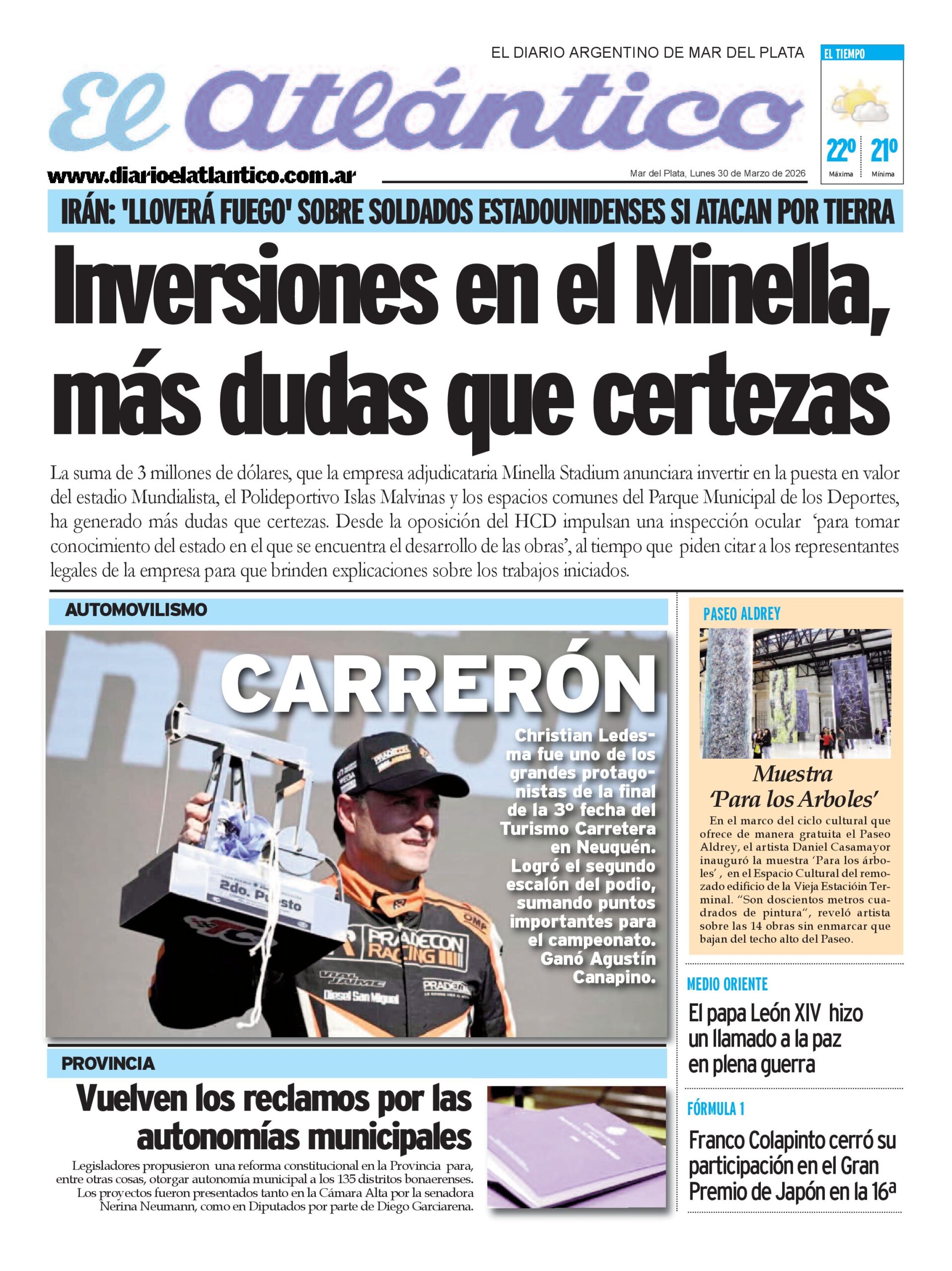 El volante marplatense Christian Ledesma fue uno de los grandes protagonistas de la final de la tercera fecha del Turismo Carretera en Neuquén. Cerró un sólido...