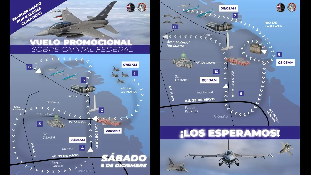 Como parte de las actividades previas al acto, hubo un vuelo rasante de los F-16 sobre la Ciudad de Buenos Aires, entre las 8 y las 8:45. Este vuelo, que originalmente iba a ser el domingo, fue reprogramado para hoy por el Ministerio de Defensa por condiciones climáticas. Los aviones pasaron por la Casa Rosada y la Avenida de Mayo hasta la altura de Plaza Miserere. Además, sobrevolaron la Avenida 9 de Julio de Sur a Norte, hasta llegar a la altura del Río de la Plata.