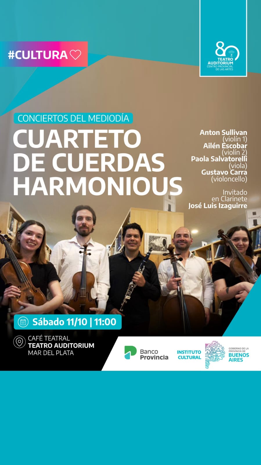 Desde las 11 de este sábado,  la Camerata Mar del Plata se presentará en el ciclo Música de Cámara, Conciertos del Mediodía en el Café Teatral Emilio Alfaro del Teatro Auditorium. La función forma parte de la programación impulsada por el Instituto Cultural de la Provincia de Buenos Aires.