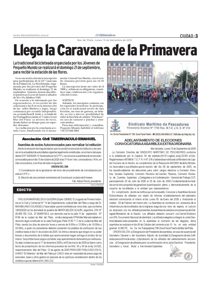 Comerciales Edicto Alvaro Butron 23/02/2021 y 12/03/2021 23 de febrero de 2021 Temas Relacionados Siguiente Edicto Nº 34700/2013 26/02/2021 No te pierdas Edicto Natalya Nedopytaylo 20/02 y 08/03 Comerciales Convocatoria Sindicato de Luz y Fuerza Gral. Pueyrredón p3-lyf-11-12-25bDescarga Continuar Leyendo Comerciales Convocatoria Educadores de Mar Chiquita p3-mch-4-12-25Descarga Continuar Leyendo Comerciales Edicto ciudadanía Moskot Olena p3-avisos-26.11.25_FDescarga p3-aviso-27.11.25Descarga Continuar Leyendo