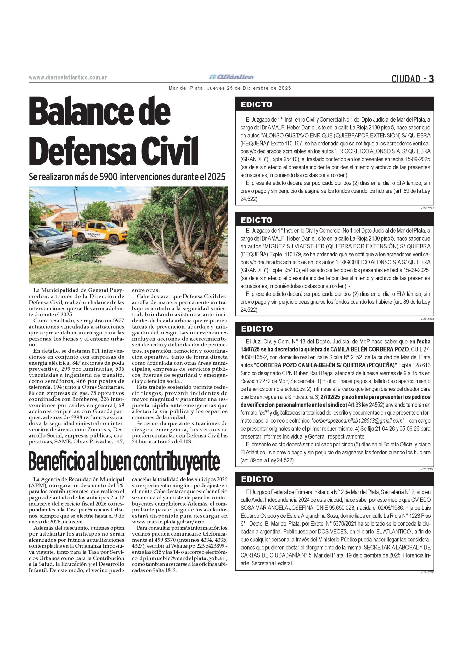 Toda la información del día 25/12/25