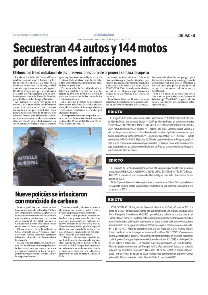 Comerciales Edicto: Consorcio De Propietarios Country Costa Del Sol Club Privado C/Palacio Vasquez Olga Rocio S/ Cobro Ejecutivo De Expensas Nº Causa: MP-13741-2022 8 de agosto de 2023 p5-edicto-8.8_Descarga p3-edictos-9-8-23bDescarga Temas Relacionados Siguiente Edicto herederos Alberto Miguel Rebullida. No te pierdas Remate Volkswagen tipo Sedan 5 Ptas.; modelo GOL TREND 1.6/2015; Dominio PEF 985 Comerciales Convocatoria Cooperativa de Trabajo Guanahani Ltda. p3-aviso-7.4.26F-1Descarga Continuar Leyendo Comerciales Licitación Pública N° 05/2026 Emvial p5-Emviar1.4.26Descarga Continuar Leyendo Comerciales Convocatoria Mutual Buona Terra p3mar31.3.26_Descarga Continuar Leyendo
