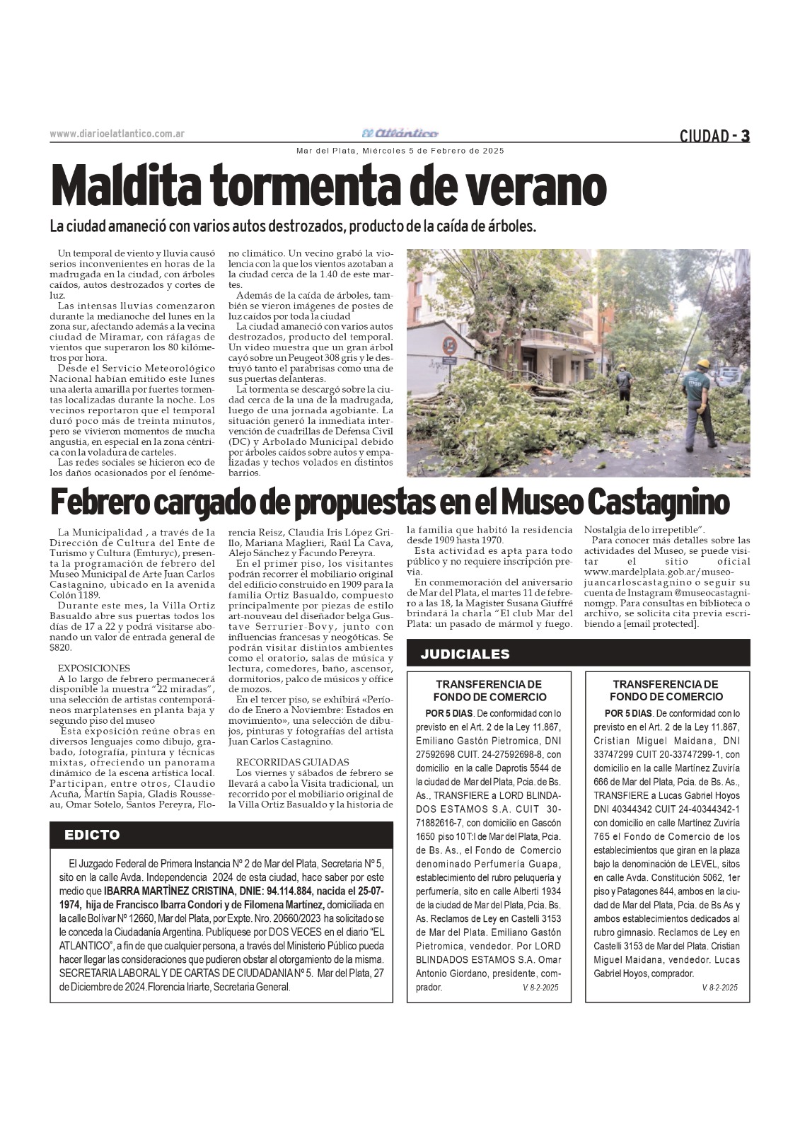 Comerciales Edicto ciudadanía Ibarra Martìnez Cristina 19 de febrero de 2025 p3-edictos-5.2.25F-2de5-2Descarga p3-iBARRA-ABEER-6.2.25-1Descarga Temas Relacionados Siguiente Edicto ciudadanía Abdulhamid Abeer No te pierdas Transferencia de Fondo de Comercio: 1-Cristian Miguel Maidana TRANSFIERE a Lucas Gabriel Hoyos. 2- Emiliano Gastón Pietromica TRANSFIERE a Lord Blindados Estamos S.A. Comerciales Edicto ciudadanía Moskot Olena p3-avisos-26.11.25_FDescarga p3-aviso-27.11.25Descarga Continuar Leyendo Comerciales Licitación Pública N° 10/2025 Emvial p3-avisos-26.11.25_FDescarga Continuar Leyendo Comerciales Edicto autos “Dos Reis Rosa Joaquín S/ Quiebra”, Expediente Nº 97.743 p3-edicto-22-11-25-1de2Descarga p3-edicto-23-11-25-2de2Descarga Continuar Leyendo