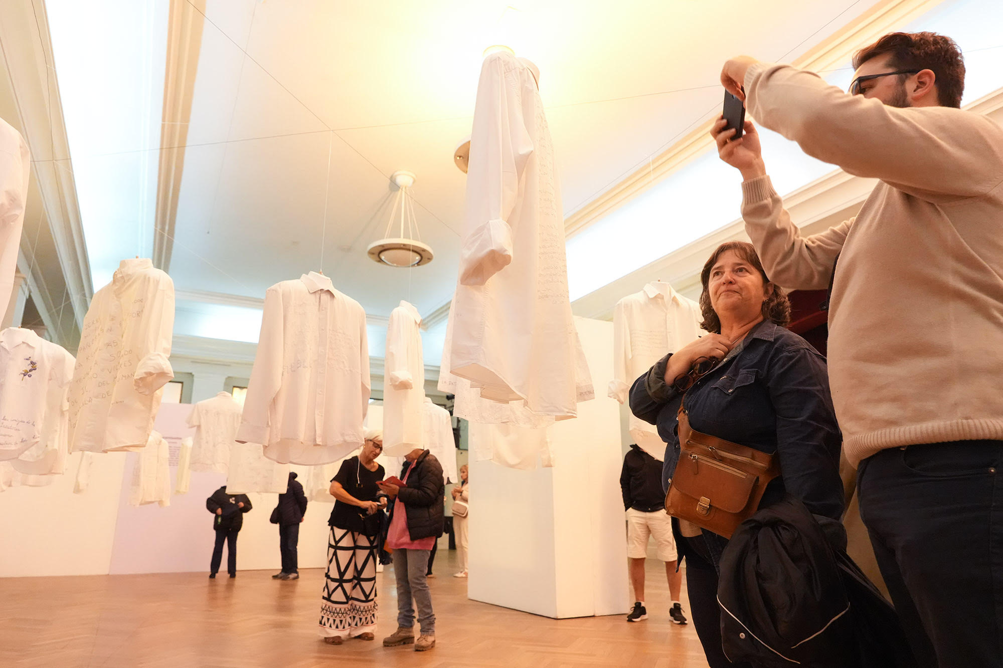 Las camisas blancas son el soporte de escrituras hilvanadas que resisten y que entrelazan temporalidades, trayendo al presente las palabras de Eva. Esas palabras siguen iluminando porque portan su indignación ante la injusticia social, su pasión por la igualdad de derechos y su amor a los humildes.