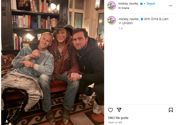 El actor, recordado por sus roles icónicos en películas como “9 semanas y media” (1986) o “La ley de la calle” (1983), entre muchos otros, compartió una foto en su cuenta de Instagram desde Londres, antes de entrar a la casa. Allí se lo ve junto a los entrenadores de boxeo británicos Liam Kid Vaughan y Ryan Vaughan.