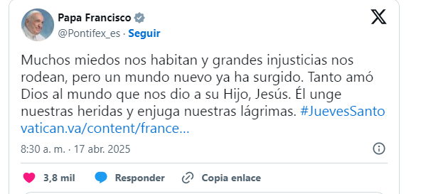 De igual modo, en su cuenta de X, realizó un posteo para los fieles católicos del mundo: