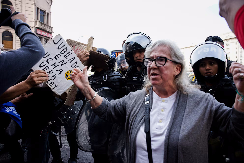 Los jubilados iniciaron la protesta pasadas las 16, cuando se registraron los primeros empujones y cruces con los efectivos de la Policía Federal que buscaban garantizar el cumplimiento del protocolo antipiquetes.