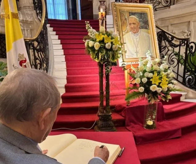 Políticos, embajadores, diplomáticos y personalidades de todo el país visitan por estas horas la sede diplomática del Vaticano, en el barrio Recolecta de la ciudad de Buenos Aires, para expresar sus condolencias.