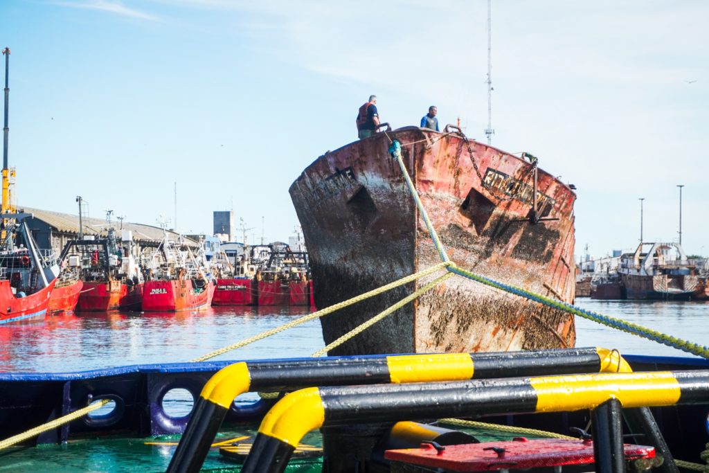 Por esta última vía también se logró el retiro del pesquero “Giuliana”, de 63,89 metros de eslora. Fue remolcado hacia la vecina terminal de Quequén, donde será reducido a chatarra.