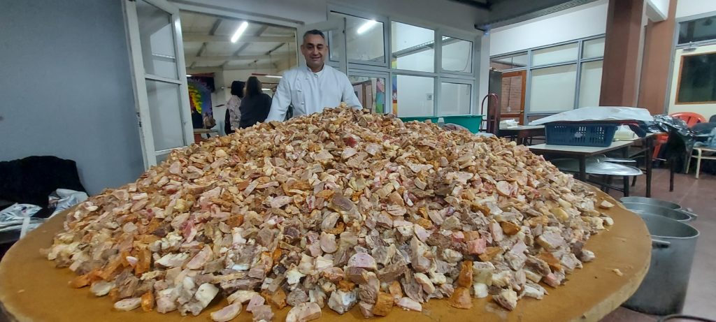 “Además –continuó- habrá una preparación vegana para aquellos que así lo prefieran, abriendo la posibilidad que nadie se pierda celebrar la Patria de la mejor manera. Es un trabajo arduo, donde iniciamos 24 horas antes con las tareas de cortado de verduras y de los cárnicos para acto seguido continuar desde la madrugada con la cocción.