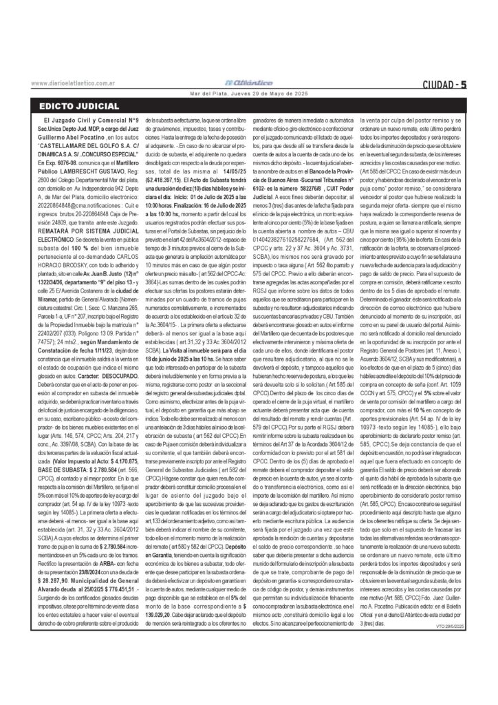 Comerciales Remate Autos “Castellamare Del Golfo S.A. C/ Dinamica S.A. S/ ••Concurso Especial “En Exp. 6076-08 27 de mayo de 2025 p5-mrrmr-27.5.2025-1de3Descarga p5-mrrmr-28.5.25-2de3Descarga p5-mrrmr-29.5.25-3de3Descarga Temas Relacionados Siguiente Convocatoria Cooperativa De Trabajo Pucara Limitada No te pierdas Convocatoria Cooperativa De Trabajo Punta Motogotes Limitiada Comerciales Edicto ciudadanía Moskot Olena p3-avisos-26.11.25_FDescarga p3-aviso-27.11.25Descarga Continuar Leyendo Comerciales Licitación Pública N° 10/2025 Emvial p3-avisos-26.11.25_FDescarga Continuar Leyendo Comerciales Edicto autos “Dos Reis Rosa Joaquín S/ Quiebra”, Expediente Nº 97.743 p3-edicto-22-11-25-1de2Descarga p3-edicto-23-11-25-2de2Descarga Continuar Leyendo