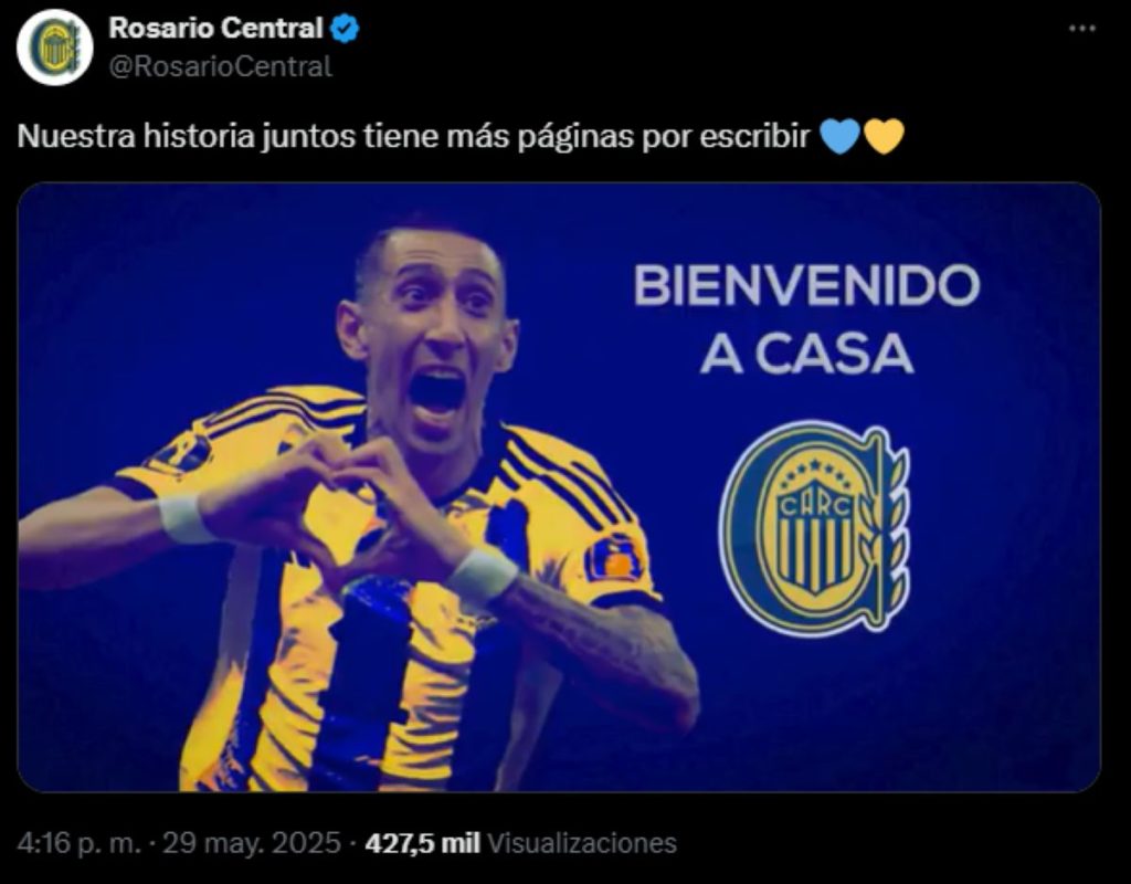 Rosario Central confirmó oficialmente el regreso de Ángel Di María, el jugador surgido de sus divisiones inferiores que brilló en Europa y en la Selección Argentina. La noticia fue publicada a través de un emotivo video en las redes sociales del club.