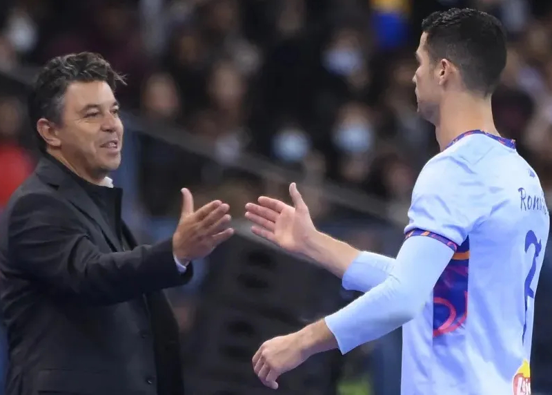 Gallardo y Cristiano Ronaldo se conocen del breve paso del Muñeco por el fútbol de Arabia Saudita, donde se enfrentaron. Además, Gallardo dirigió al portugués en un partido amistoso entre Rihadh Season Team y PSG, donde jugaba Messi.