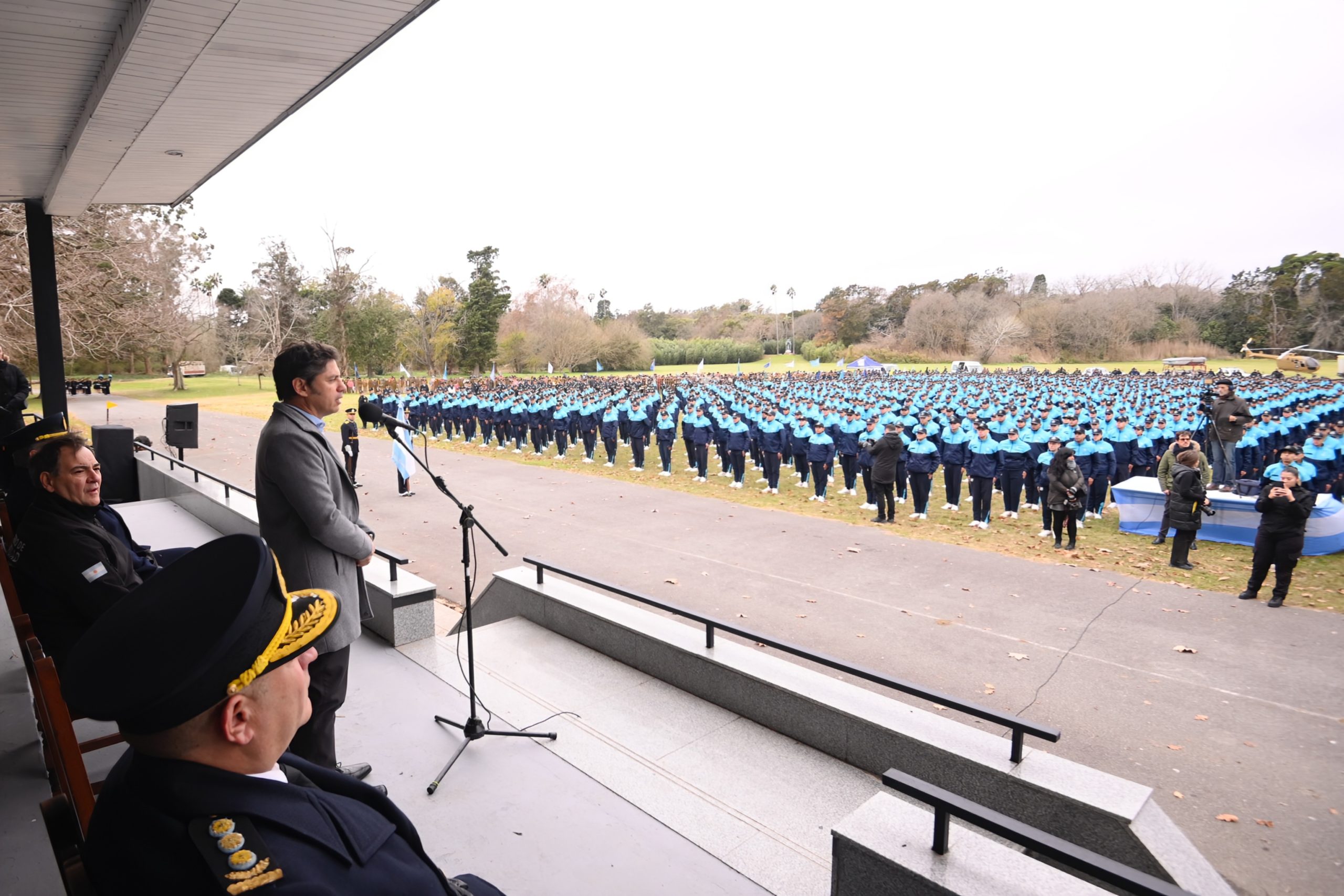 El gobernador de la provincia de Buenos Aires, Axel Kicillof, encabezó este lunes junto al ministro de Seguridad, Javier Alonso, el acto de jura de fidelidad a la bandera nacional de 2.736 cadetes que finalizarán este año el proceso de formación.