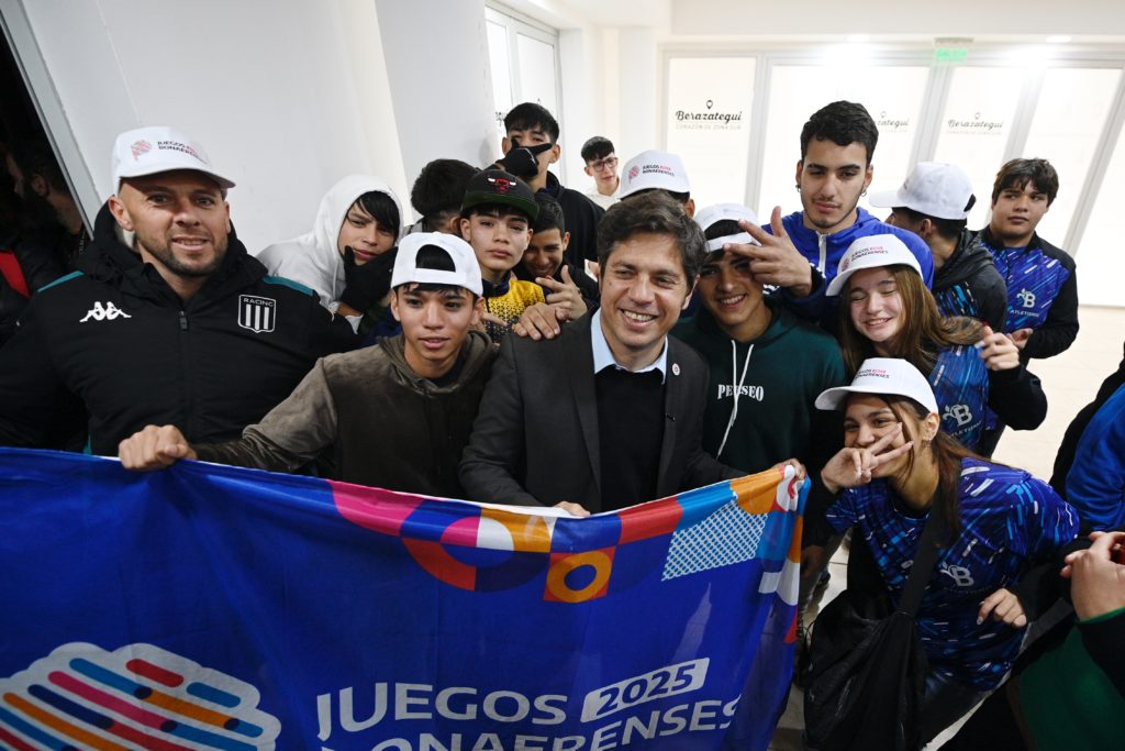 El gobernador de la provincia de Buenos Aires, Axel Kicillof, encabezó este lunes en el municipio de Berazategui el acto de lanzamiento de los Juegos Bonaerenses (JJBB) 2025 junto al ministro de Desarrollo de la Comunidad, Andrés Larroque; el subsecretario de Deportes, Cristian Cardozo; la subsecretaria de Promoción Sociocultural, Lorena Riesgo; y el intendente local, Juan José Mussi.