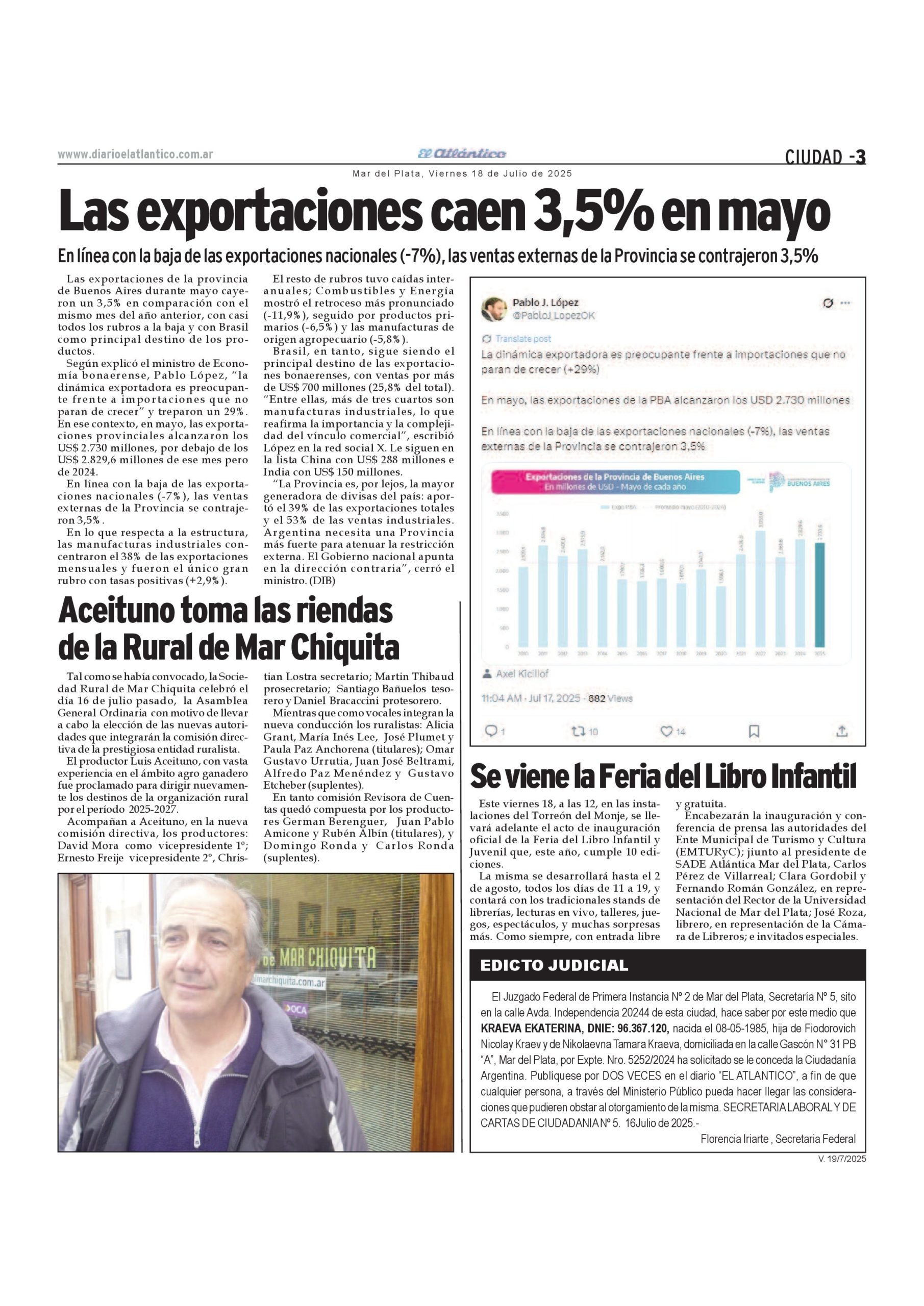 Comerciales Edicto ciudadanía Kraeva Ekaterina 18 de julio de 2025 p3-edicto-18.7.2025Descarga p3-edicto-19.7.2025_Descarga Temas Relacionados Siguiente Edicto Ciudadanía Medina Ayma Claudio Sergio No te pierdas Convocatoria Sindicato de Peluqueros, Peinadores y Afines Comerciales Convocatoria Sindicato de Luz y Fuerza Gral. Pueyrredón p3-lyf-11-12-25bDescarga Continuar Leyendo Comerciales Convocatoria Educadores de Mar Chiquita p3-mch-4-12-25Descarga Continuar Leyendo Comerciales Edicto ciudadanía Moskot Olena p3-avisos-26.11.25_FDescarga p3-aviso-27.11.25Descarga Continuar Leyendo