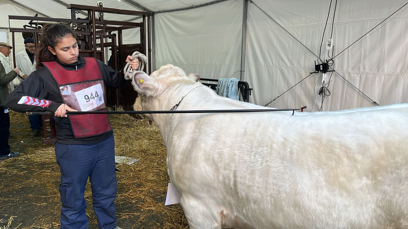 Emma pone todo su cuidado en’ Coco’, un toro de la raza Shorthorn.