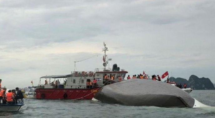 El fatal accidente ocurrió mientras el barco recorría las aguas azul verdosas de la bahía, famosa por sus impresionantes islas de piedra caliza cubiertas de selva tropical.