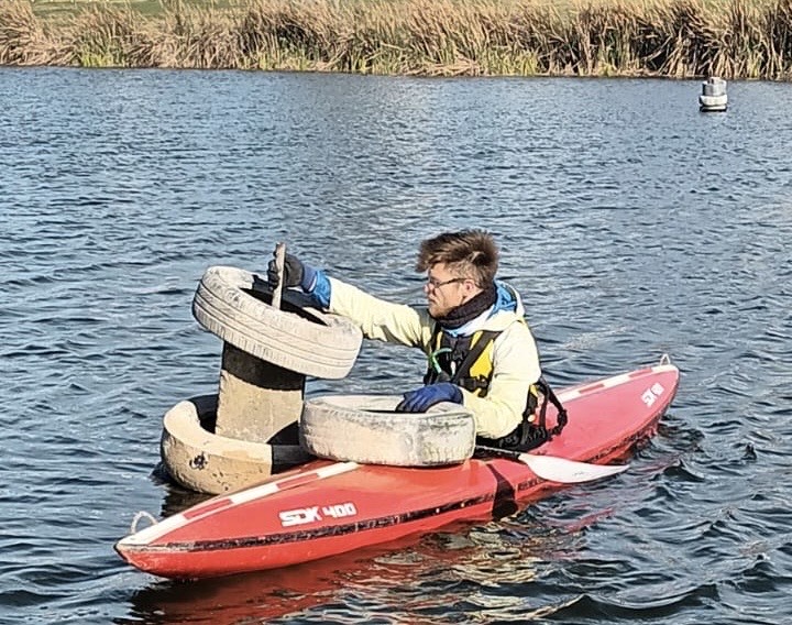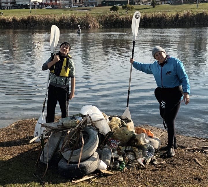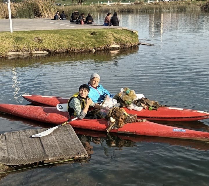 Cada fin de semana, la Asociación Marplatense de Kayak dicta clases de ambientación en la Laguna de Punta Mogotes. Pero la actividad va más allá del deporte: en los últimos 30 a 40 minutos de cada turno, los participantes se suman a tareas de limpieza del espejo de agua y sus orillas.