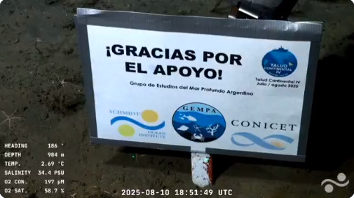 El gesto de agradecimiento de los investigadores que participan de la misión «Talud Continental IV» conmovió a los miles de espectadores que siguieron día a día los hallazgos en el cañón submarino de Mar del Plata.