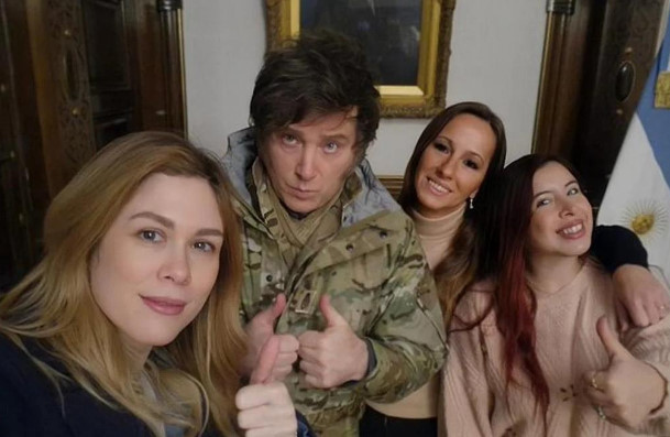El mandatario estuvo vestido con la indumentaria del Ejército y se mostró junto a la diputada nacional de La Libertad Avanza (LLA) Lilia Lemoine y Macarena Jimena Rodríguez.