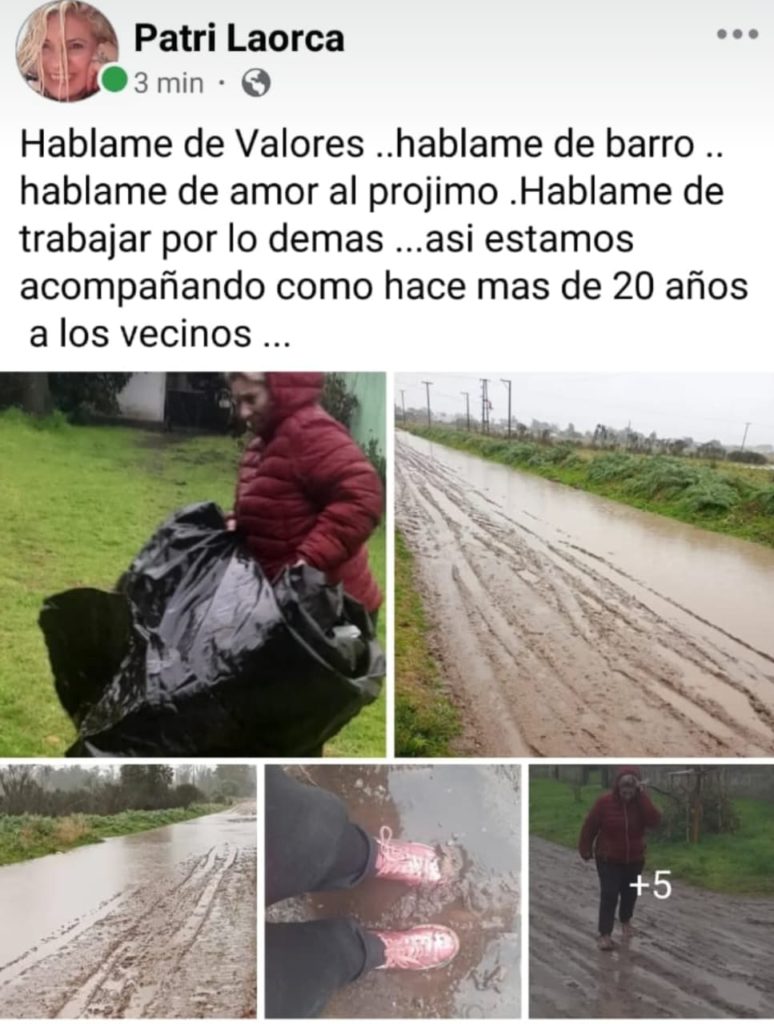 Después de recorrer en los úlimos días en medio de la tormenta las calles 106 y 51, 67 y 96/94, entregando frazadas, silo bolsas para los techos castigados por la lluvia, ropa de abrigo y mercadería, donada por quienes confían en su trabajo, la referente social compartió fotos en las redes y afirmó: ‘A los pocos minutos fueron censuradas debido a denuncias infundadas con el único propósito de no mostrar la desidia en su máxima expresión’.