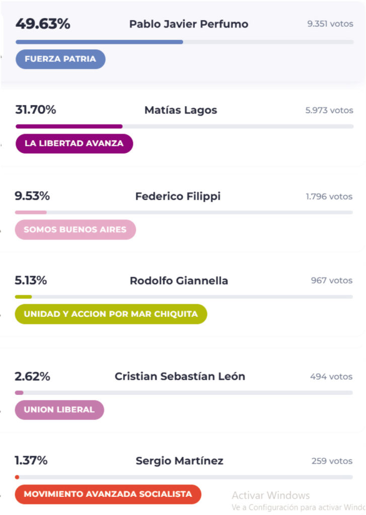 Seis listas competieron por siete bancas en el Concejo Deliberante de Mar Chiquita. La Alianza Fuerza Patria (4) y Libertad Avanza (3) se repartieron los escaños en juego, quedando sin representación las restantes cuatro listas, según los escrutinios provisorios de las elecciones legislativas de este domingo 7 de setiembre.