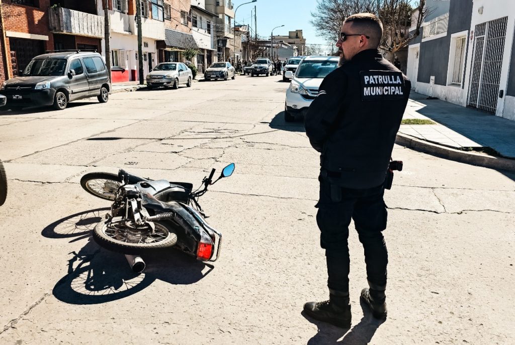 Durante un recorrido preventivo de la Patrulla Municipal, agentes visualizaron en Catamarca y Quintana, a dos delincuentes en moto robándole a un menor en la vía pública. Al intervenir, se inició una persecución donde los delincuentes escaparon en contramano. Al llegar a la intersección de Catamarca y Almafuerte, chocaron con un auto que venía circulando por Almafuerte.