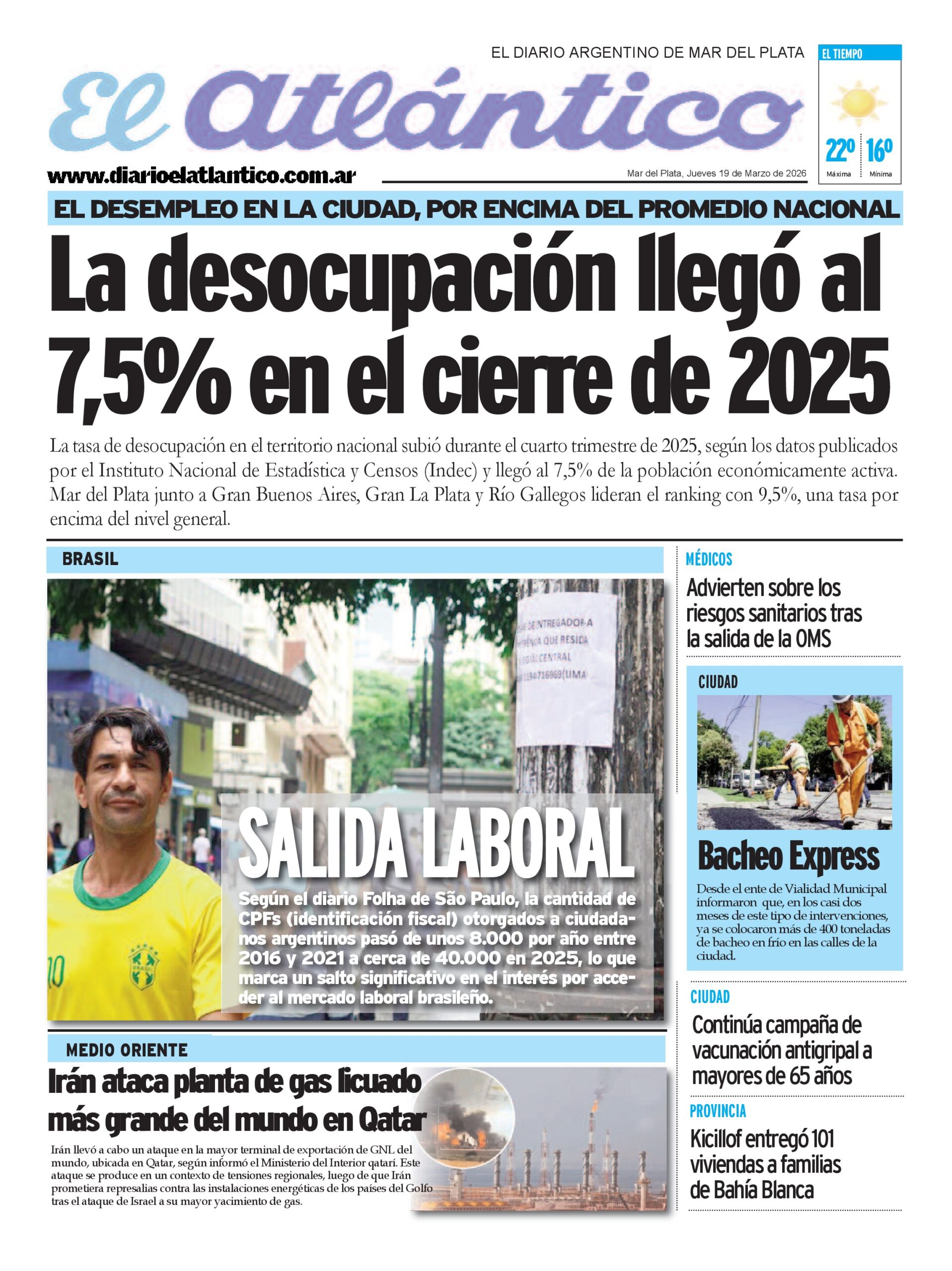 Portada digital del día 19/3/2026