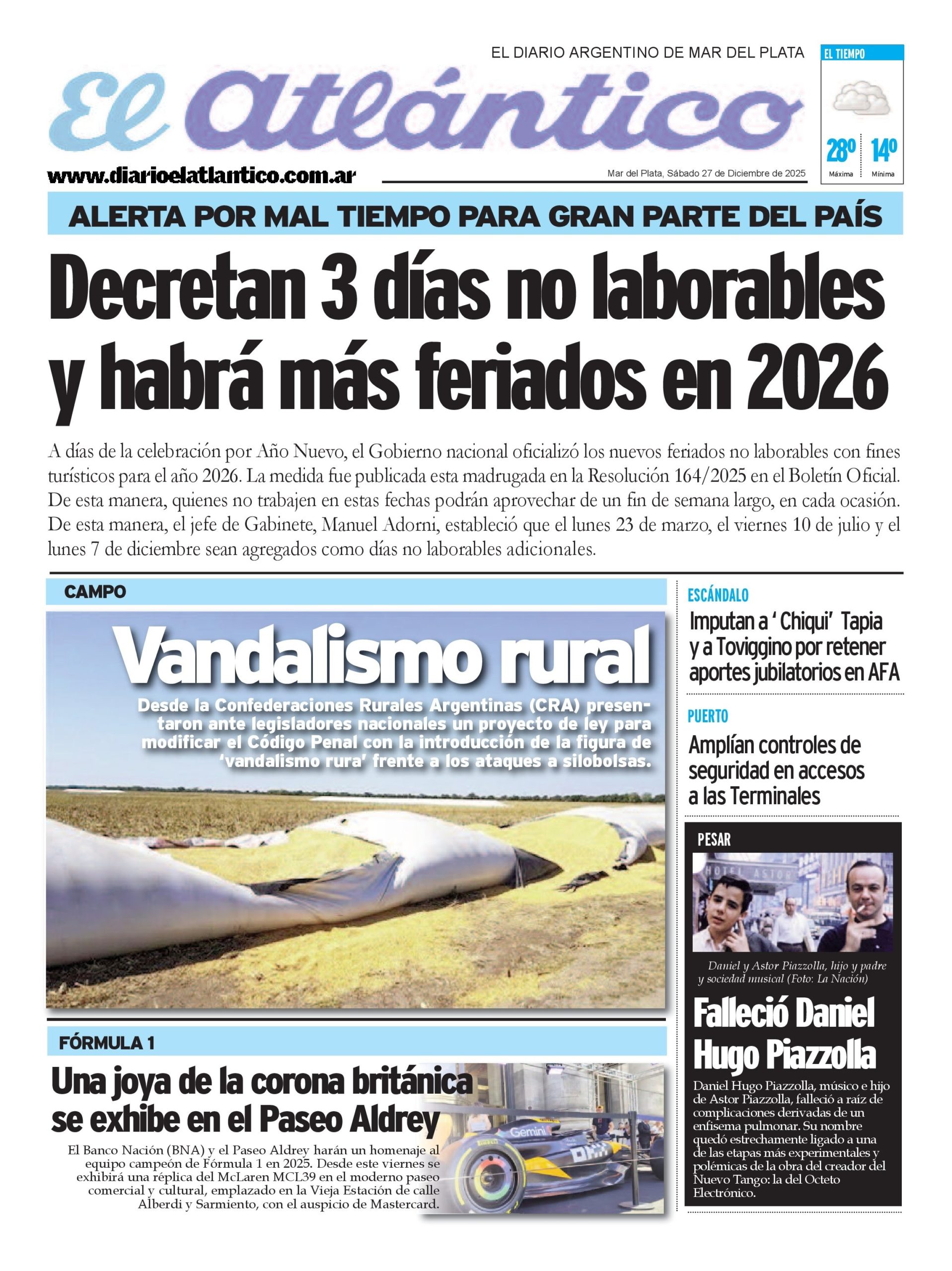 El Banco Nación (BNA) y el Paseo Aldrey harán un homenaje al equipo campeón de Fórmula 1 en 2025. Desde este viernes se exhibirá una réplica del McLaren MCL39 en el moderno paseo comercial y cultural emplazado en la Vieja Estación de calle Alberdi y Sarmiento, con el auspicio de Mastercard.