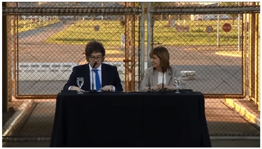 El presidente Javier Milei presentó el nuevo proyecto para la reforma del Código Penal que enviará al Congreso de la Nación. Junto al mandatario estuvo la ministra de Seguridad, Patricia Bullrich.