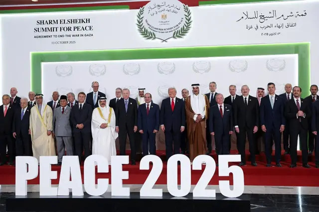 A ese acto asistieron otros mandatarios como el emir de Qatar, Tamim bin Hamad Al Thani; el presidente de Egipto, Abdel Fattah al Sisi; el presidente de Turquía, Recep Tayyip Erdogan; el primer ministro británico, Keir Starmer; el primer ministro de Canadá, Mark Carney; el primer ministro de Kuwait, Ahmad Al-Abdullah Al-Sabah; el presidente de Francia, Emmanuel Macron; el canciller de Alemania, Friedrich Merz; el primer ministro de Hungría, Viktor Orban; el presidente de Indonesia, Prabowo Subianto; y el rey Abdalá de Jordania, entre otros.