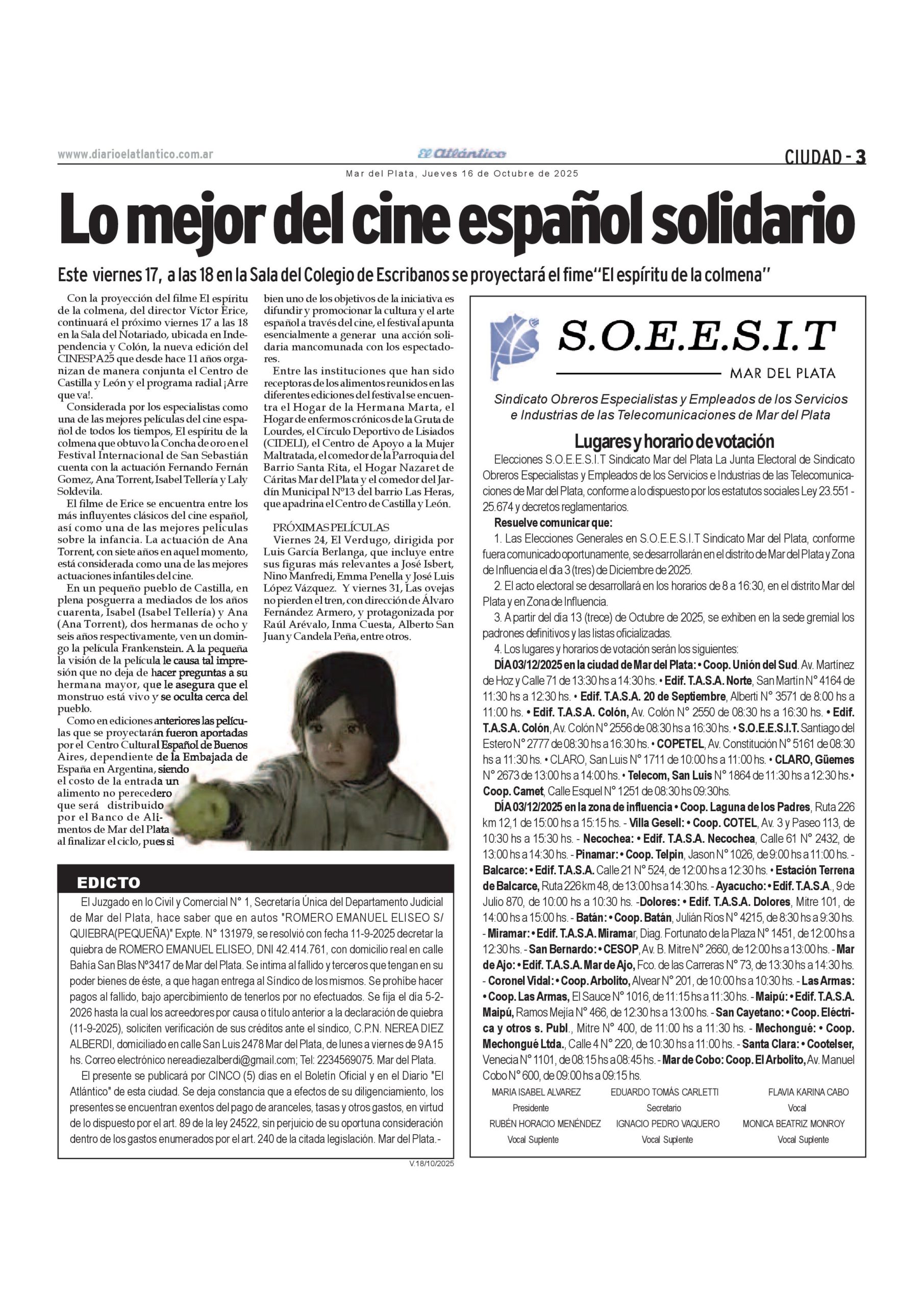 Convocatoria Sindicato Obreros Especialistas y Empleados de los Servicios e Industrias de las Telecomunicaciones de Mar del Plata S.O.E.E.S.I.T