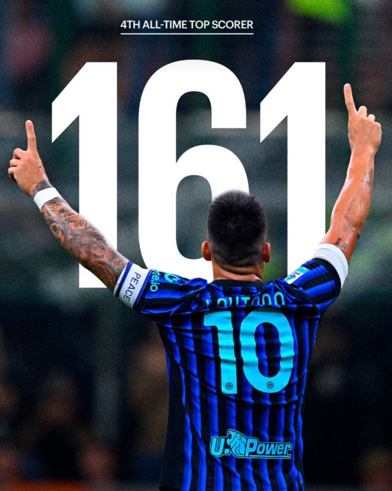 El bahiense llegó a 161 conquistas con la camiseta de Inter y ya está entre los cuatro máximos goleadores del club.