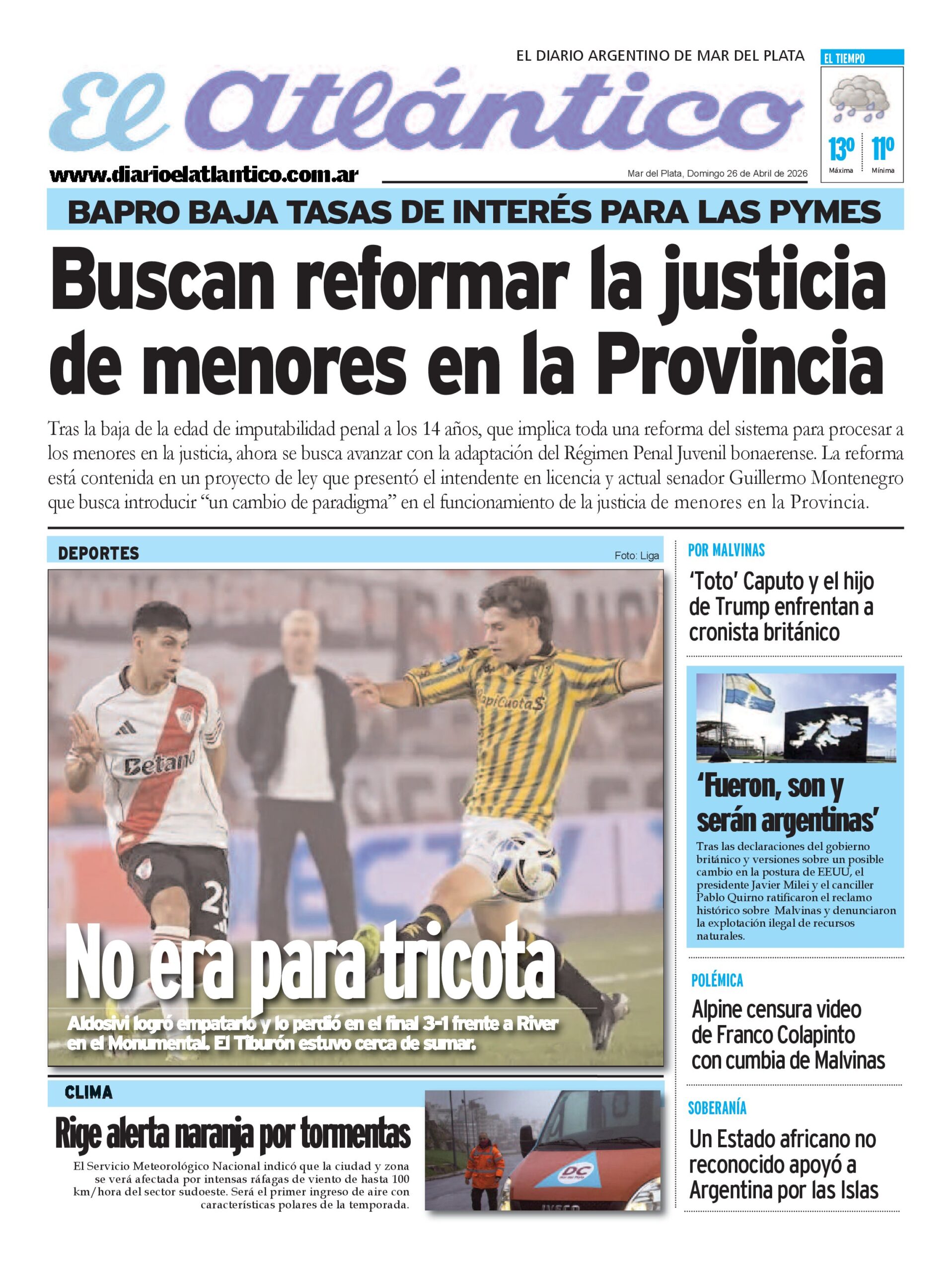 El 'Tiburón' tratará de lograr su primer victoria y asi alejarse del fondo de la tabla ante un 'millonario' golpeado tras perder el clásico ante Boca. En la lucha por la permanencia, Aldosivi recibió una buena noticia con una nueva caída de Estudiantes de Río Cuarto, el único equipo que se ubica por debajo en la tabla de promedios y en la anual. Sin embargo, la victoria de Deportivo Riestra lo dejó a tres puntos de los rivales más cercanos en la sumatoria de la temporada, el propio “malevo” y Atlético Tucumán.