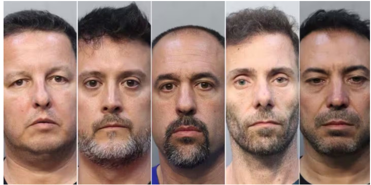 Según los reportes policiales, los sospechosos fueron identificados como Diego Luis Xiccato (46), Mauricio Ariel Aparo-Orlando (49), Sebastián Luis Moya (41), Juan Manuel Zuloaga-Arenas (49) y Juan Pablo Rua (45).