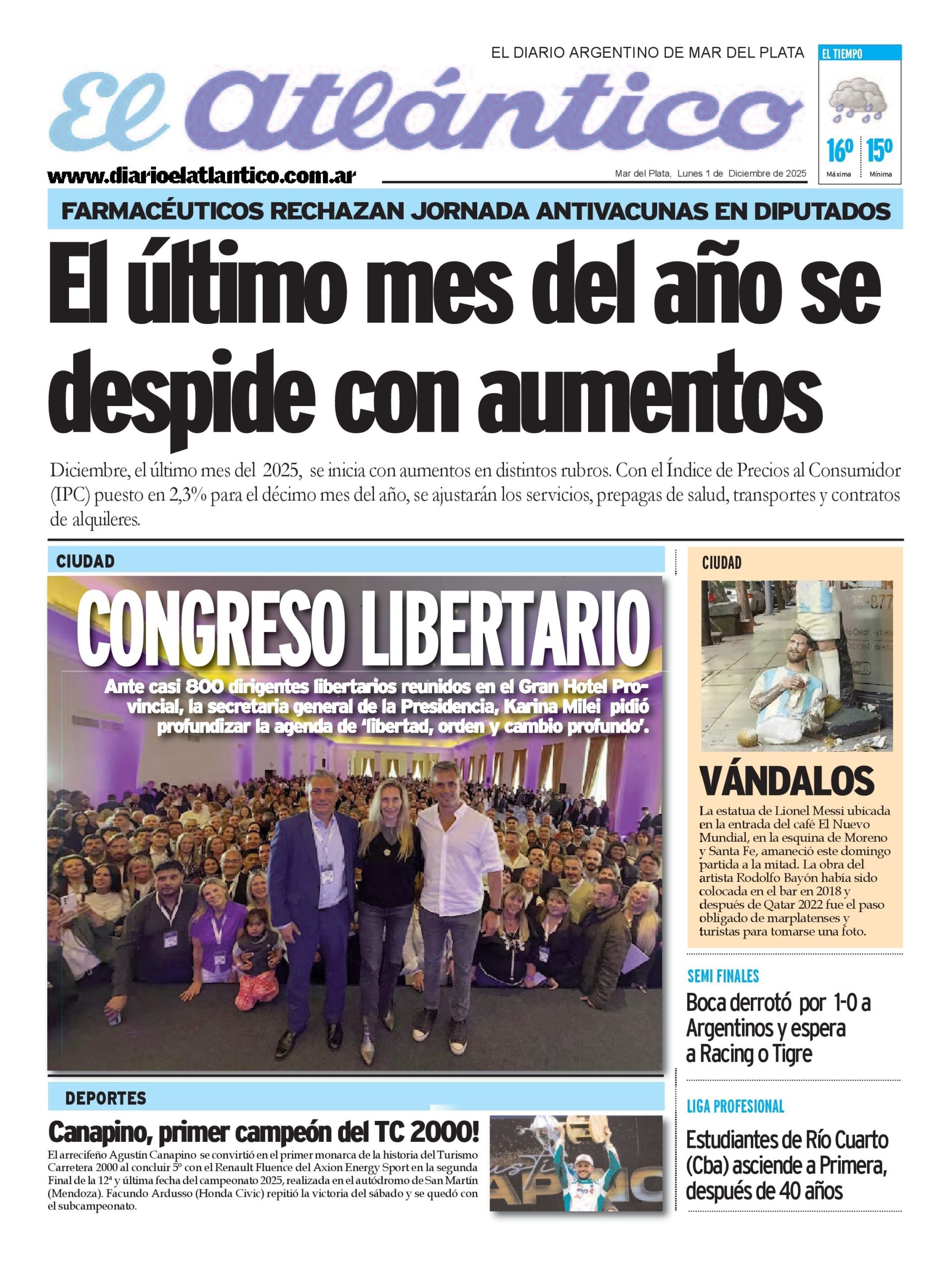 Portada digital del día 1/12/2025