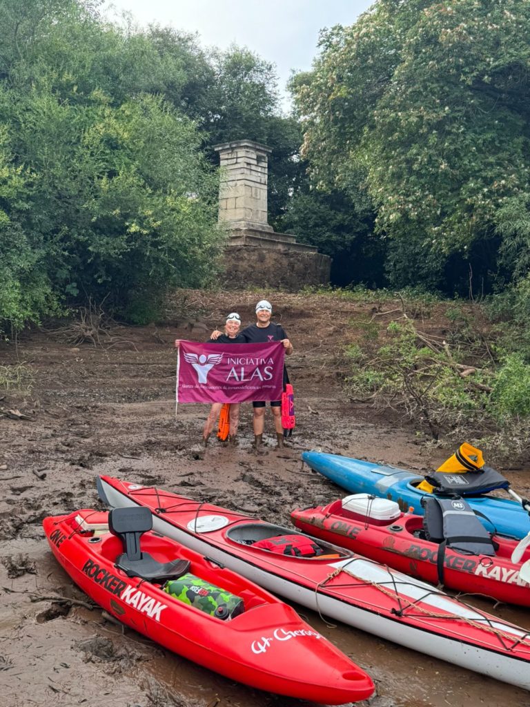 Durante toda la travesía fueron acompañados por un equipo logístico profesional, compuesto por una lancha guía, cuatro kayaks y una lancha de apoyo.