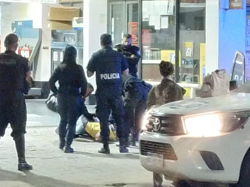La silenciosa y tranquila madrugada de Miramar, se vio alterada abruptamente por las sirenas de al menos siete patrulleros con la presencia de una veintena de informados y los gritos desgarradores de una persona, que visiblemente había sido arremetida durante su aprehensión sobre la vereda de una estación de servicio, ubicada en la intersección de la avenida Mitre y calle 32 de la vecina ciudad balnearia.