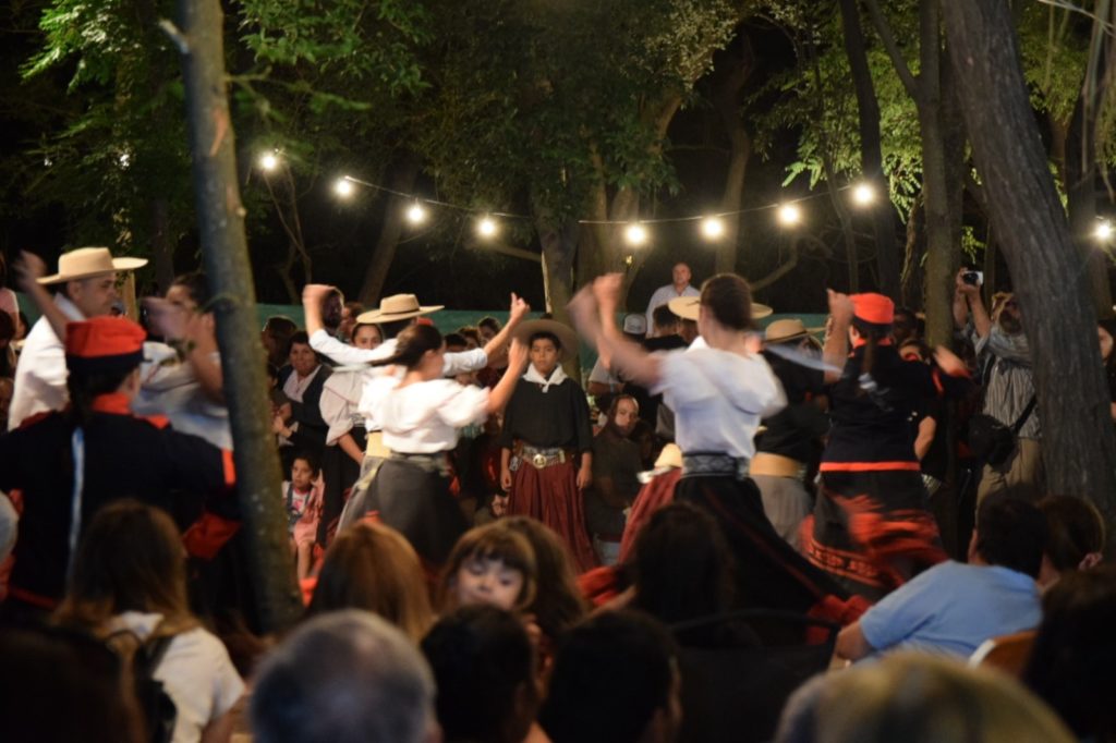 Las pintorescas edificaciones rurales ubicadas en los alrededores del pueblo abren sus puertas y centenares de personas llegan para disfrutar de la excelente gastronomía bonaerense y de la música local, representada por payadores, cantores, guitarristas, violinistas y grupos de todo tipo. La noche se extiende en los patios y al compás de la música aparecen las empanadas cortadas a cuchillo y se enciende la fogata del asador con pinchos, esperando a miles de comensales que, ante la variedad, circulan hora tras hora por todo el circuito. La velada campera recorre el centro de la ciudad, el pueblo rural Carlos Beguerie y los parajes La Paz, La Paz Chica, Forastieri y La Gloria, conectando pueblos y campos en un recorrido cultural que pone en valor la vida rural y sus tradiciones más profundas. Algunos de los viejos locales se especializan en cazuelas y picadas, otros suman pastas caseras y fiambres.