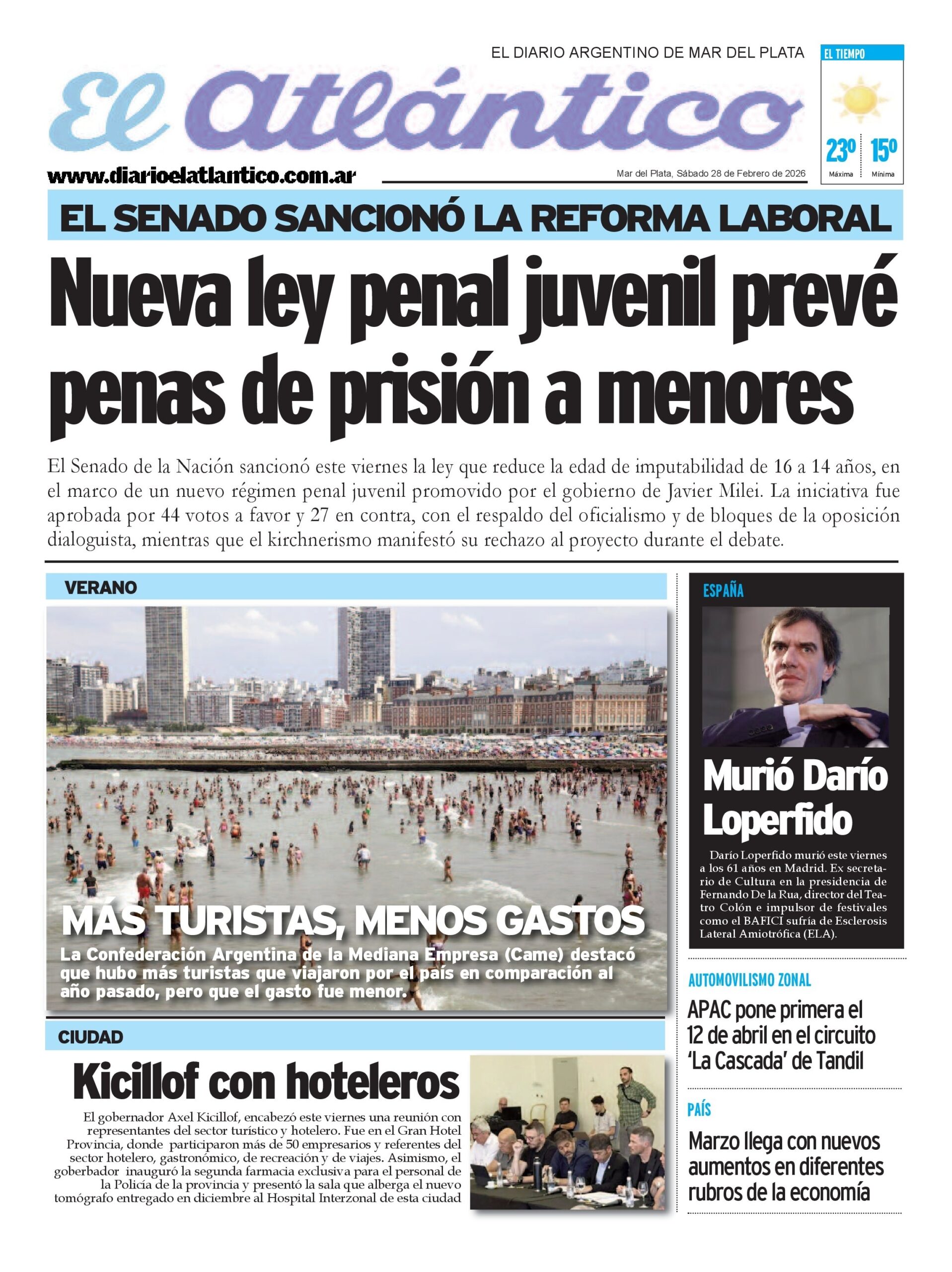 El gobernador , Axel Kicillof, encabezó este viernes una reunión con representantes del sector turístico y hotelero en el municipio de General Pueyrredon. Fue en el Gran Hotel Provincial, junto a los ministros de Producción, Ciencia e Innovación Tecnológica, Augusto Costa; de Seguridad, Javier Alonso; el intendente de Villa Gesell, Gustavo Barrera; el presidente del Banco Provincia, Juan Cuattromo; y el concejal Gustavo Pulti.