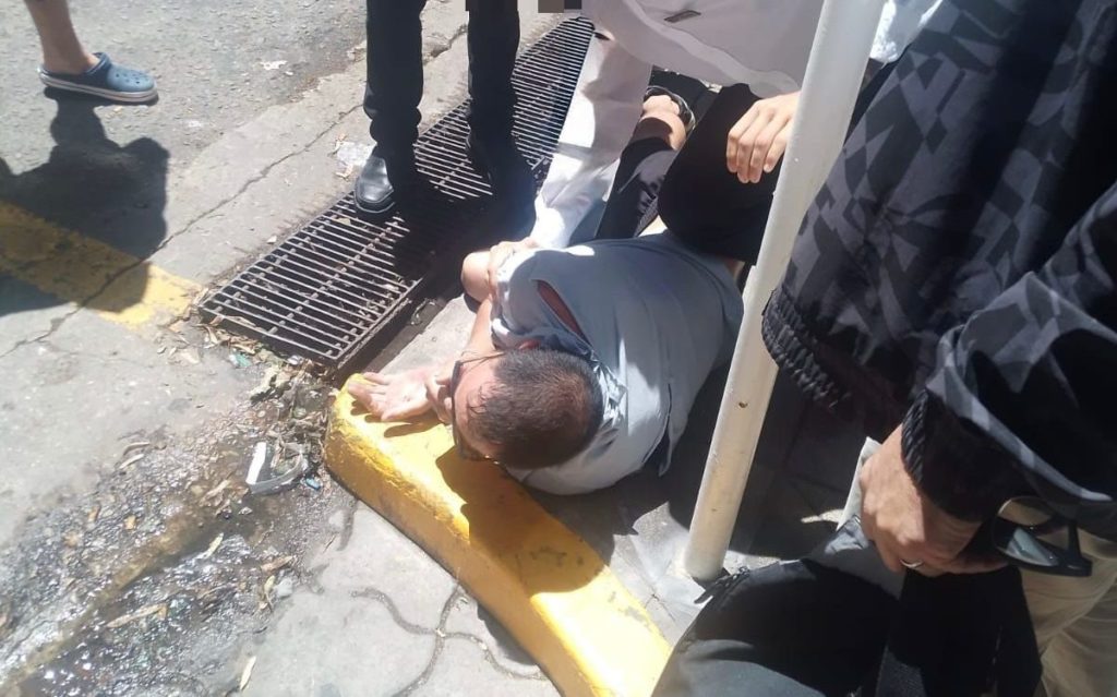 Minutos mas tarde, llegaron al lugar efectivos policiales en tres patrulleros que redujeron al individuo, lo esposaron y trasladaron a la comisaria primera, donde quedó arrestado. La presencia de los uniformados evitó un seguro linchamiento.