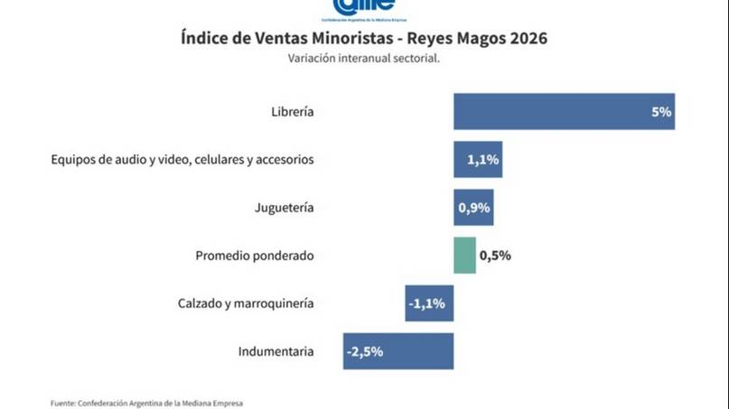 Las ventas de los comercios minoristas pymes por la llegada de los Reyes Magos 2026 registraron una suba del 0,5% frente al año anterior, en medio de un consumo débil y fragmentado.