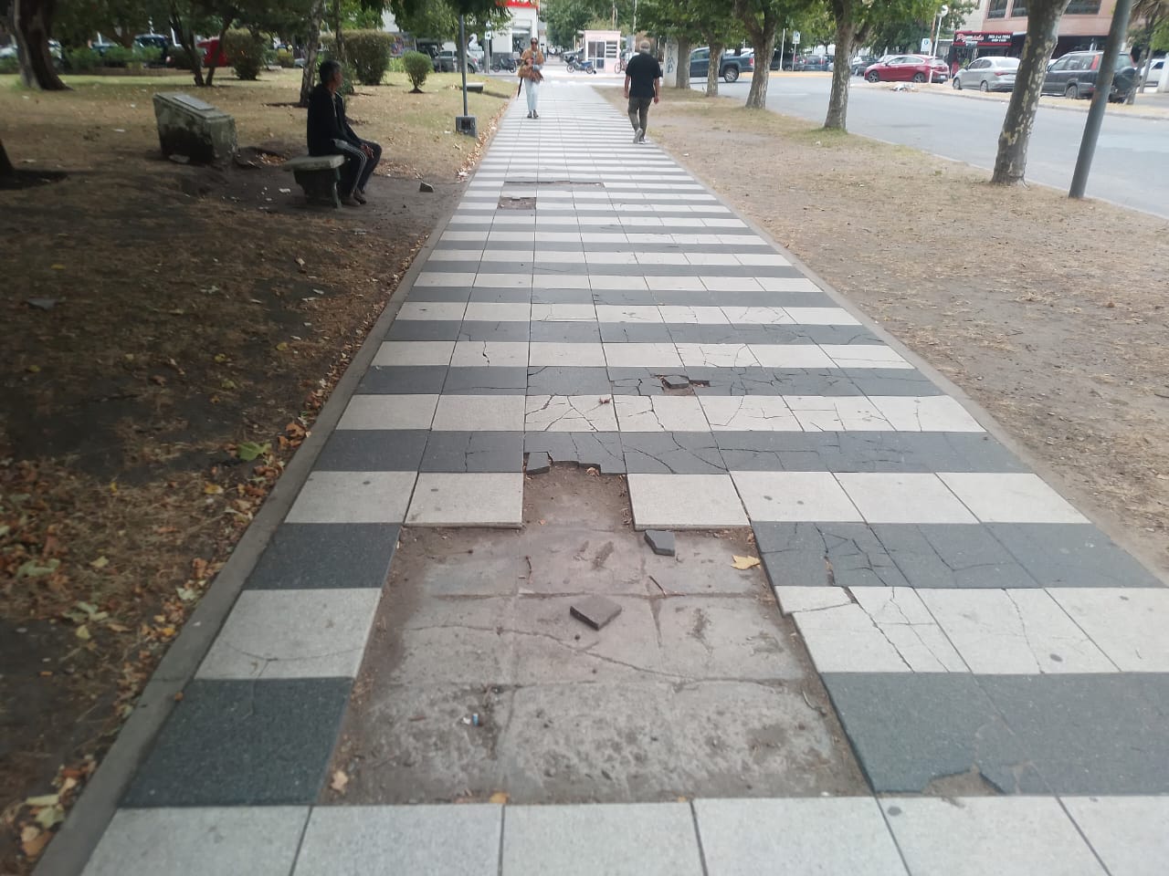 Las veredas de la plaza céntrica, corazón de la ‘Ciudad de los Niños’ , se encuentran en varios sectores en un estado deplorable, al igual que el tramo del paseo peatonal donde se emplaza la sala de juegos del Casino de Miramar.