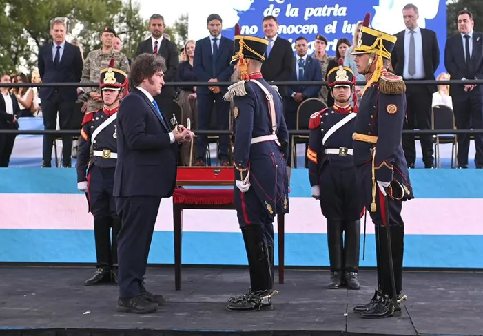 «El sable corvo del general San Martín no es un objeto histórico más, no es una pieza neutra de exhibición ni un simple vestigio del pasado: es probablemente el símbolo material más poderoso de la Nación Argentina. Es una reliquia sagrada, una prueba viviente del espíritu que encarna el gran proyecto argentino», destacó Milei, primer presidente en encabezar el acto luego de Fernando De La Rúa.