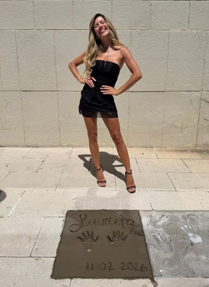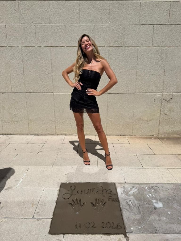 Laurita Fernández dejó plasmadas sus manos en la histórica Vereda de las Estrellas del Hermitage Hotel, acompañada por el empresario Florencio Aldrey, impulsor de este clásico del espectáculo en homenaje a las figuras que visitan la ciudad.