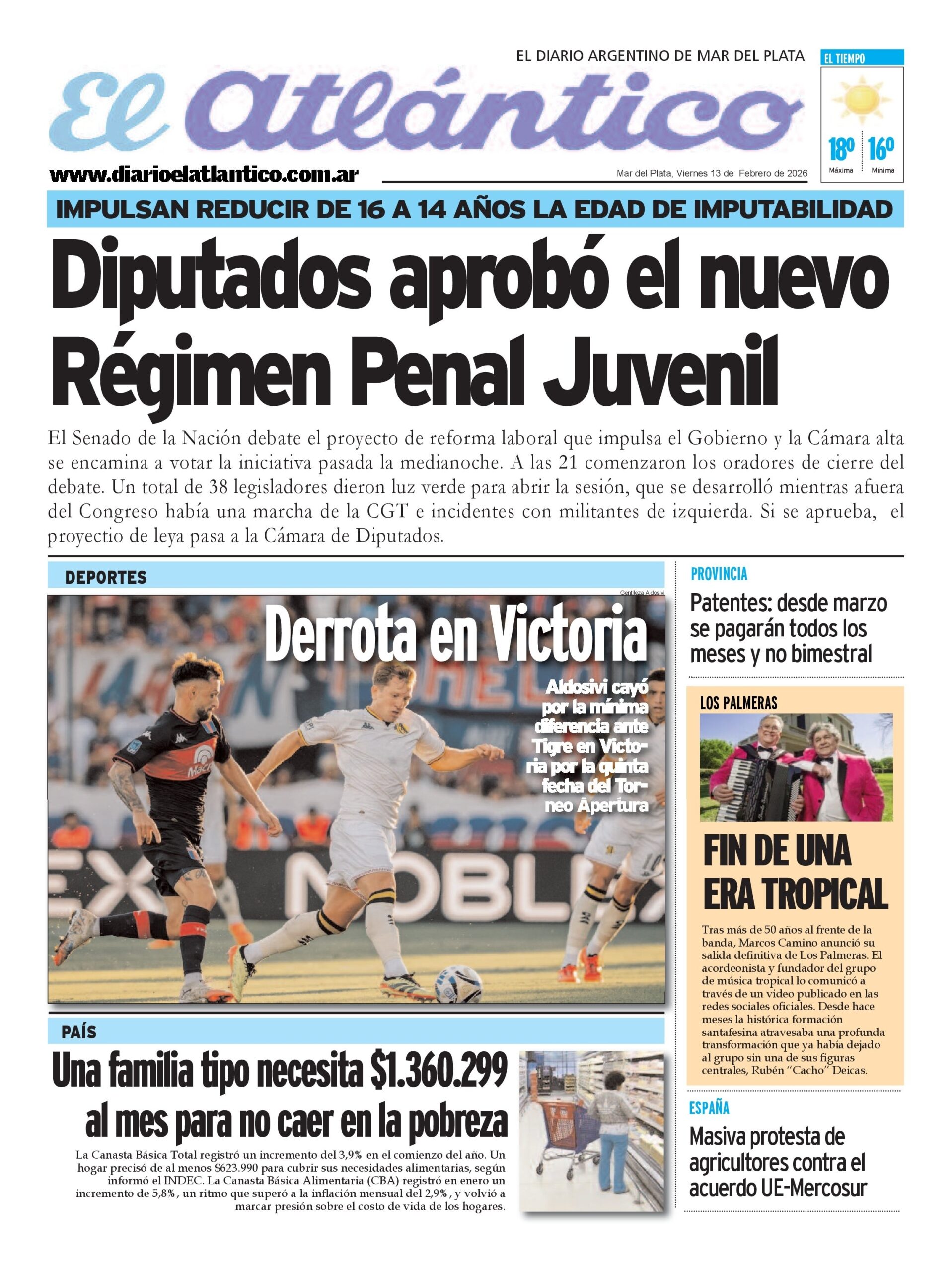 Portada digital del día 13/2/2026