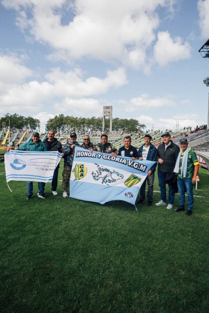 En la previa del encuentro, el club Aldosivi rindió un emotivo homenaje a los Veteranos de la Guerra, con motivo de cumplirse un nuevo aniversario de la guerra por la recuperación de las Islas Malvinas ante los ingleses en 1982.