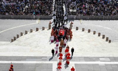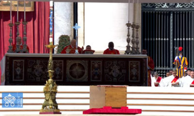 Desde el atrio de la Basílica de San Pedro, se celebra la misa exequial por el Papa Francisco presidida por el cardenal Giovanni Battista Re, decano...