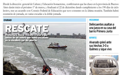 Efectivos de la Prefectura Naval Argentina (PNA) rescataron hoy a tres tripulantes de un velero que había encallado en la escollera sur del puerto , informaron...